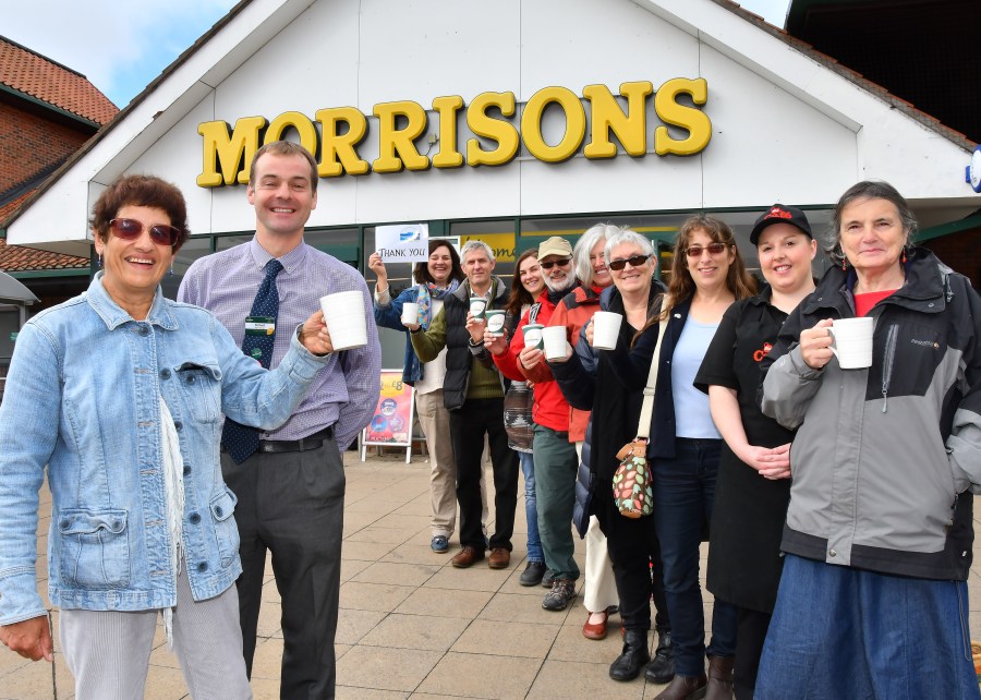 Pictured outside Morrison’s store in Malton are store manger Richard Bradley with Janice Gupta Gwilliam and fellow members of the Fair Trade Group. The store is now selling Fair Trade Hot Drinks in it’s cafe. Pictire David Harrison.