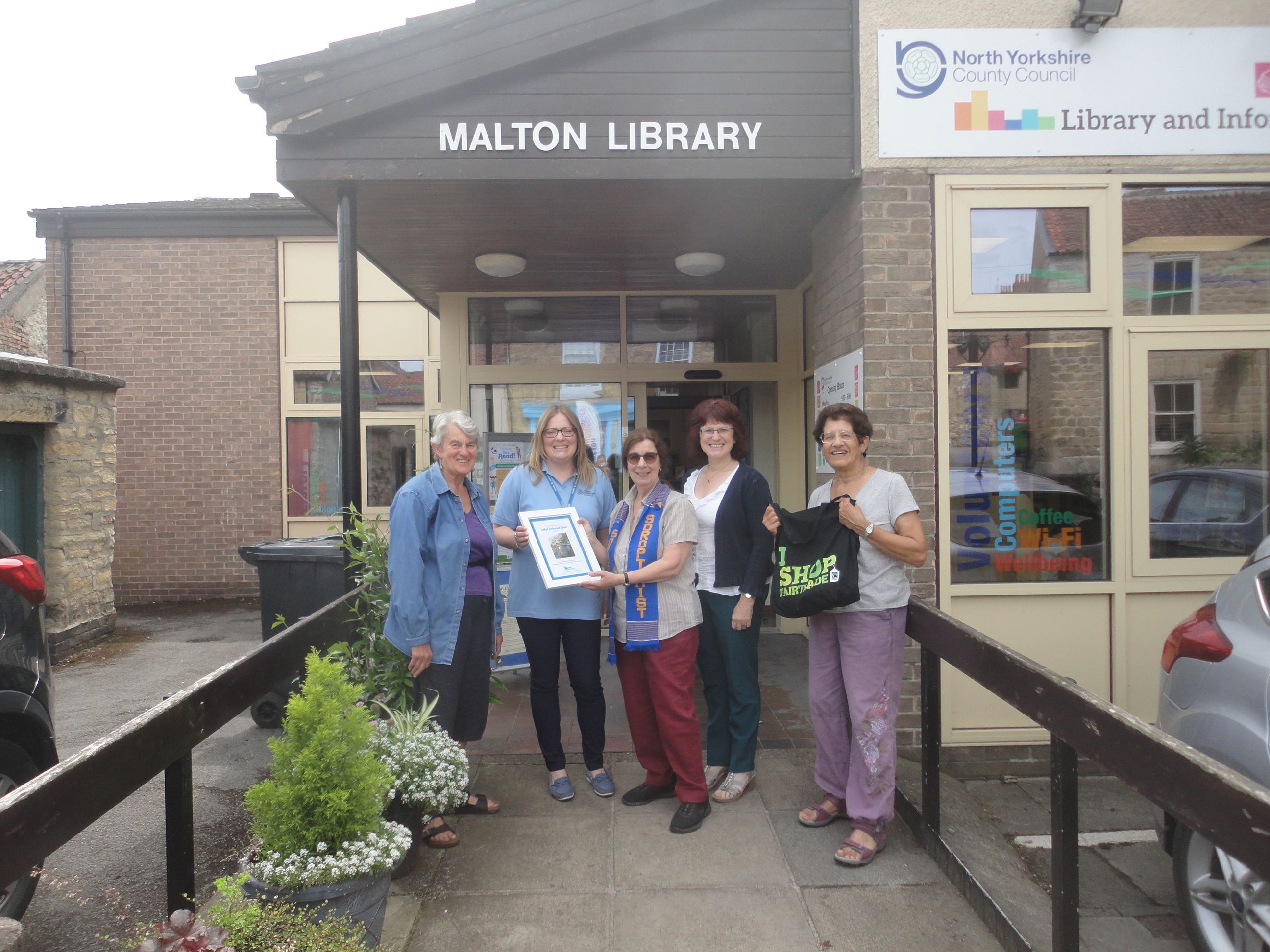 Presenting the Malton Town council twinning certificate to be displayed in Malton library.
