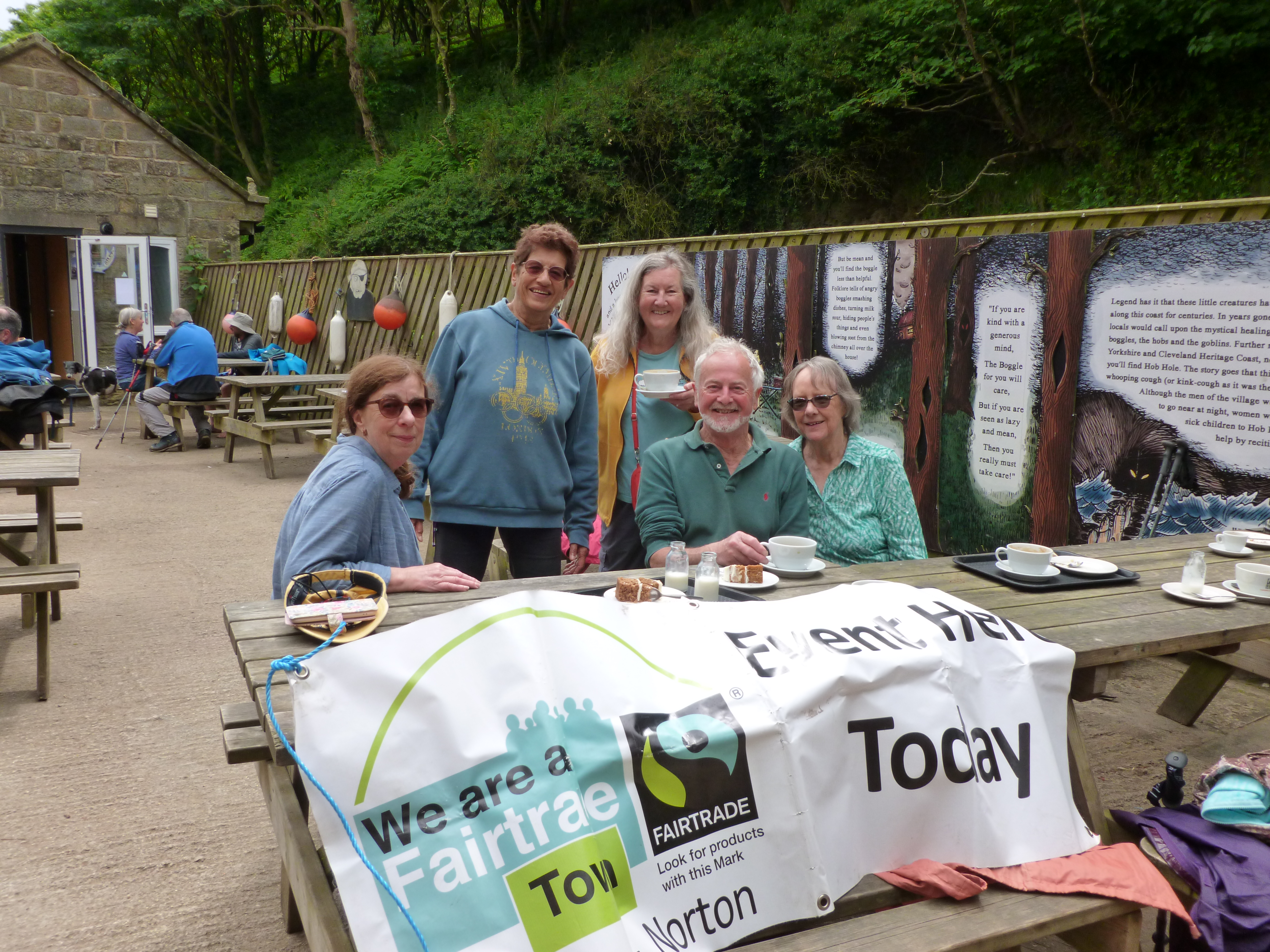 A social event. Members of the group went to Boggle Hole Youth Hostel for Fairtrade coffee and cakes and then back to Robin Hoods Bay for fish and chips.